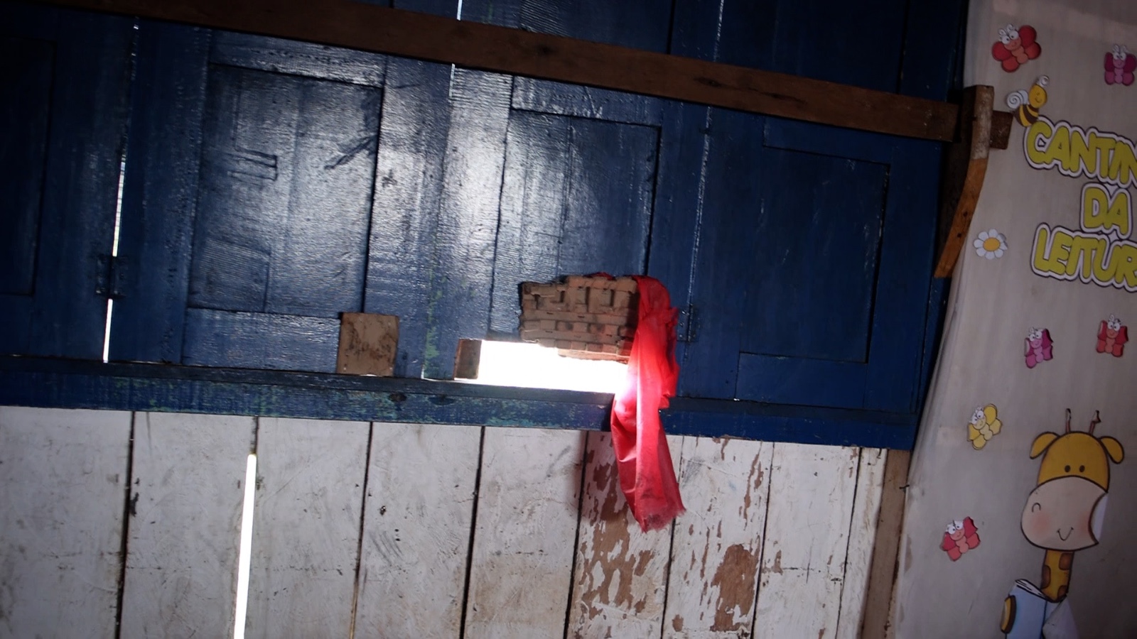 O problema não se limita ao transporte. As escolas funcionam em prédios de madeira com graves falhas estruturais: pisos quebrados, portas e janelas que não fecham, banheiros sem manutenção e até caixas d’água que já desabaram.