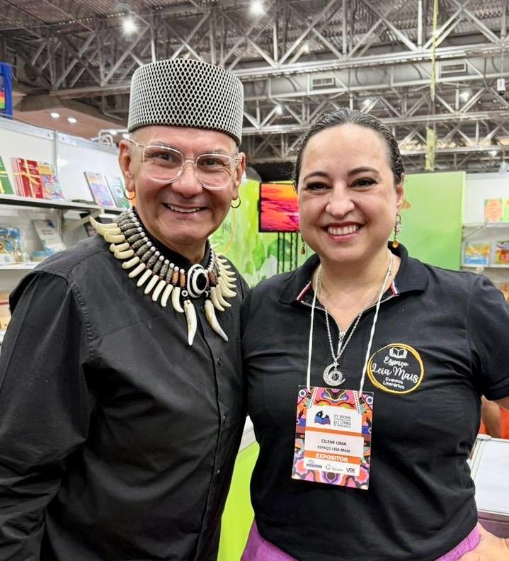 A diretora e anfitriã do Espaço Leia Mais, Cilene Lima, ao lado do escritor amazonense Lucius Gonçalves em Olinda